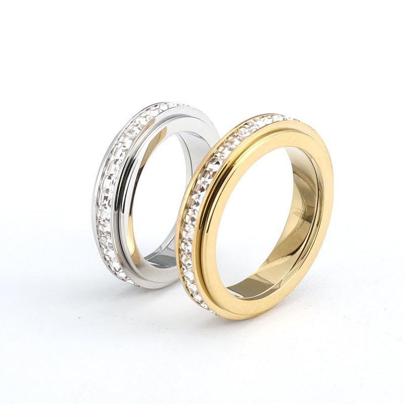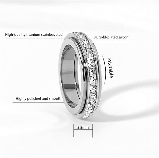 • Anxiety Ring for Women Men. These Spinner Fidget Band Rings this spinner ring can help you get through stress, reduce anxiety and calm yourself down.This spinner rings also could be used as a wedding ring, engagement ring, promise ring, meditation ring and daily band ring.Cubic Zirconia ring Spinner design.The fidget rings for anxiety enhance your mood.