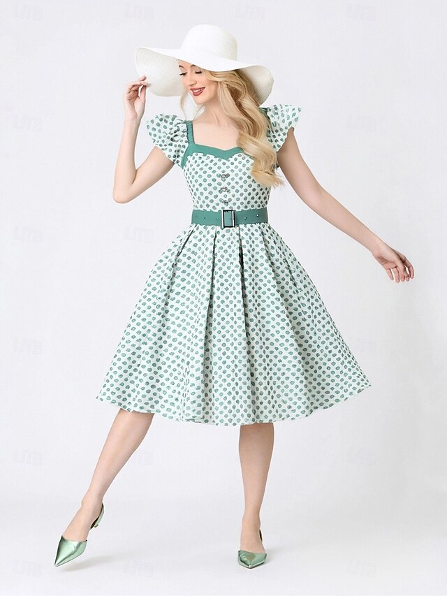 More information about Retro Vintage 1950s Rockabilly Midi Swing Dress Flare Dress With Belt Polka Dot Fancy Dress Women's Carnival Masquerade Vacation Daily Wear Retro Theme Party Adults' Dress Spring & Summer