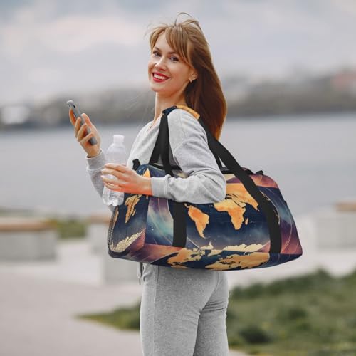 World Map Print Travel Duffle Bag - Foldable Personal Item Travel Bag for Women & Men,Carry-On Convertible Crossbody Tote Bags with Adjustable Shoulder Strap & Pockets 13x10.2x19.7 in 7