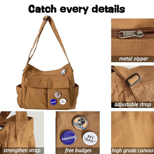 Fashion Canvas Crossbody Bag with Cute Accessories Casual Messenger Bag with Pendants Shoulder Bag Purse Travel Daypacks 7