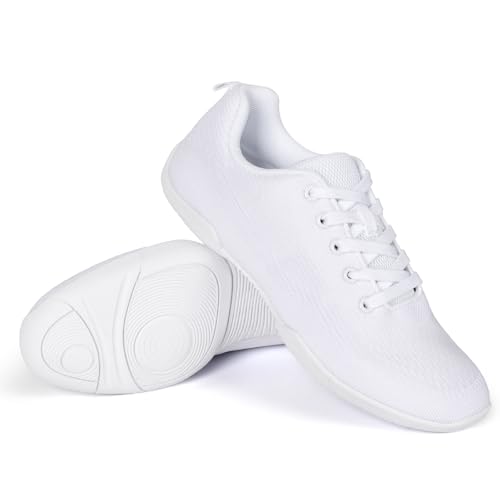 • 【Suitable Occasions】High performance white cheerleading shoes that are designed specifically for cheerleaders and flyers. Good for indoor practices, outdoor games, and to competition, perfect for cheering, stunting, tumbling, toe pointing and jumping.