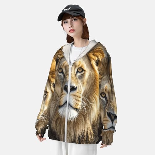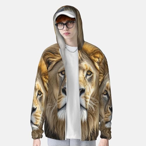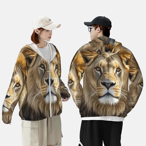 • Premium Quality Fabric: UPF 50+ sun protection jacket hooded, shield your skin from harmful sun rays. Breathable, lightweight & soft fabric makes these sun shirts performence better for hot days. The Lion image sun protective shirts fabric wicks away sweat and moisture, keeping you dry and fresh