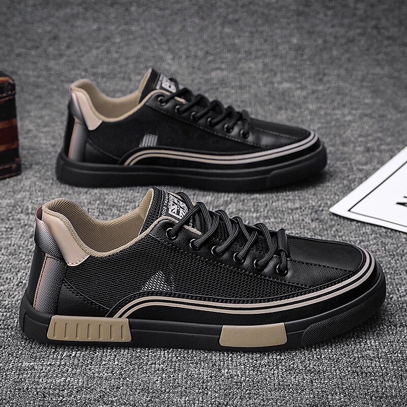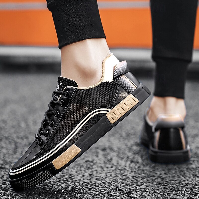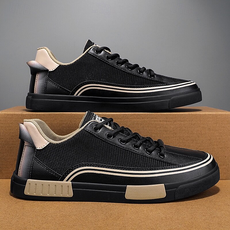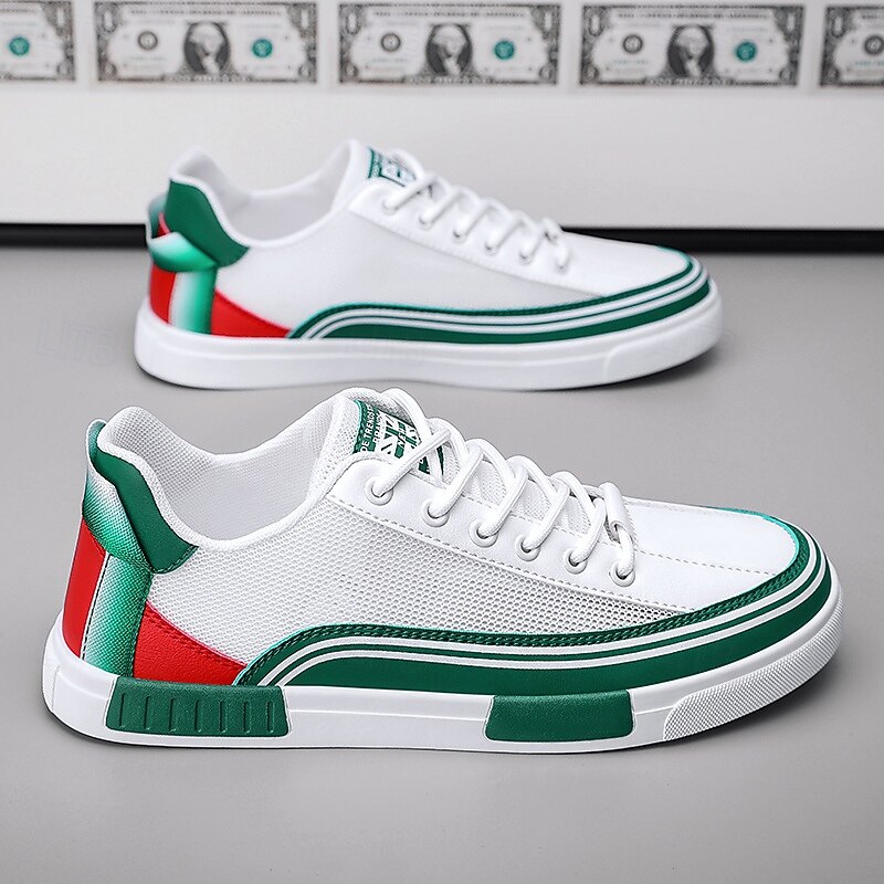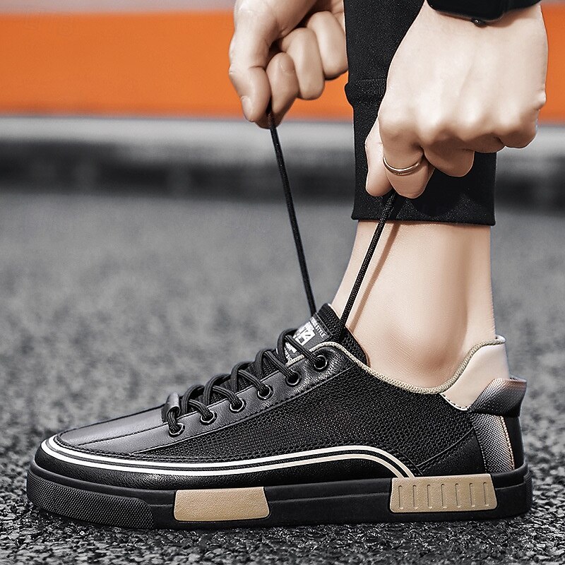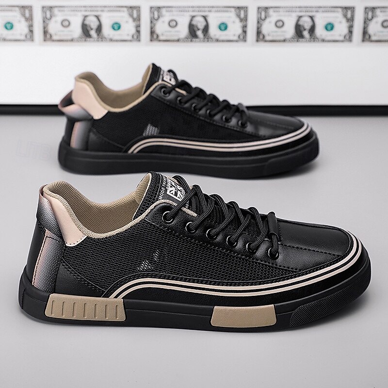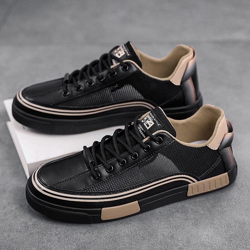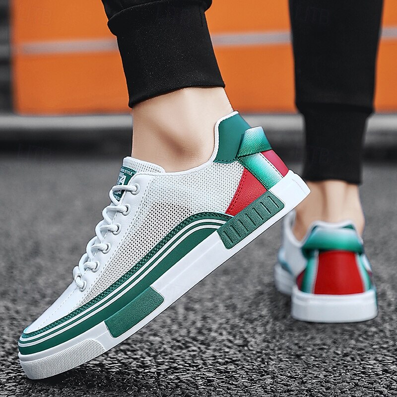 More information about Men's Casual Shoes Walking Casual PU Leather Mesh Breathable Comfortable Slip Resistant Lace-up Black Green / White Summer Spring