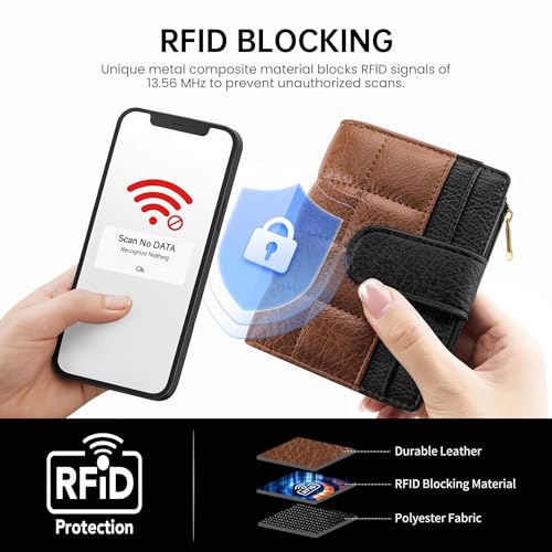 Small Wallet for Women RFID Blocking Card Holder Bifold Compact Wallets With Zipper Coin Pocket Black&Brown 7