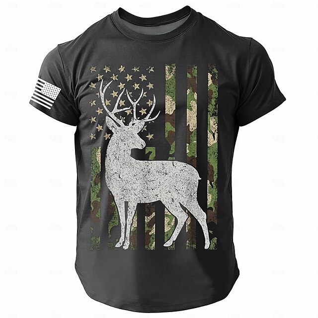 Men's American US Flag Deer T Shirt Short Sleeve T shirt 3D Print Crew Neck Shirt Fashion Athleisure Street Sports Outdoor Daily Black Blue Summer Spring Clothing Apparel S M L XL XXL XXXL 3
