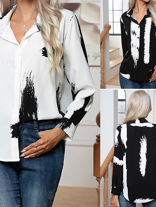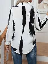 More information about Women's Shirt Abstract Daily Stylish Casual Long Sleeve Shirt Collar Regular Tops Work Daily Holiday Buttons Print Black White Spring Fall