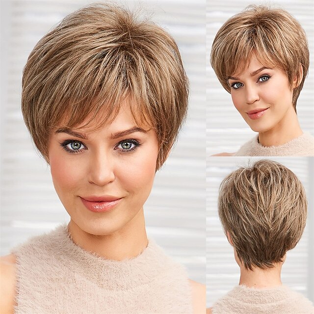 $18.99 - Short Blonde Brown Wigs for Women Memory Fiber Simulated Human Hair Pixie Curly Wig With Bang,Natural Daily Use Hair(Color JR14#) 2025. Shop for cheap Older Wigs online? Buy at lightinthebox.com on sale today!