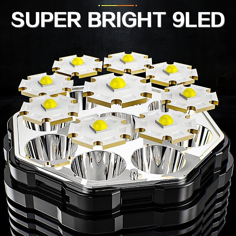 9 LED Flashlight Super Strong Torch with USB Rechargeable Handheld Lantern Waterproof Portable 9