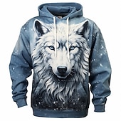 More information about Men's Graphic Animal Wolf Hoodie Hoodies Sweatshirt Fashion Daily Long Sleeve Hooded Vacation Sports Outdoor Holiday Blue Dark Blue Print Front Pocket Spring & Fall Designer