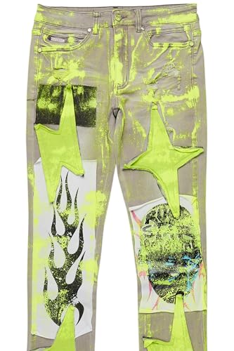 Men's Edge Grey/Yellow Roller Paint Stacked Flare Jean 6