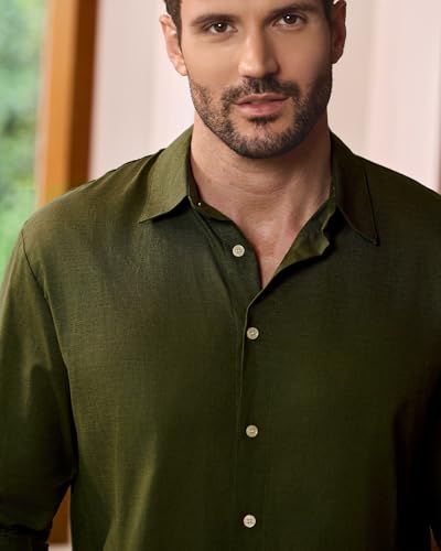 Kallspin Men's Linen Cotton Button Down Shirt Long Sleeve Casual Lightweight Breathable Summer Beach Shirt 5