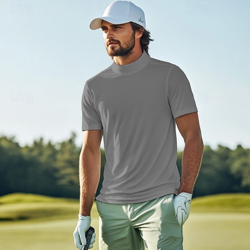 More information about Men's T Shirt Turtleneck shirt Short Sleeve Stand Collar Summer Spring Plain Fashion Casual Comfortable Classic Vacation Street Holiday White Gray Green Top Tee for Men