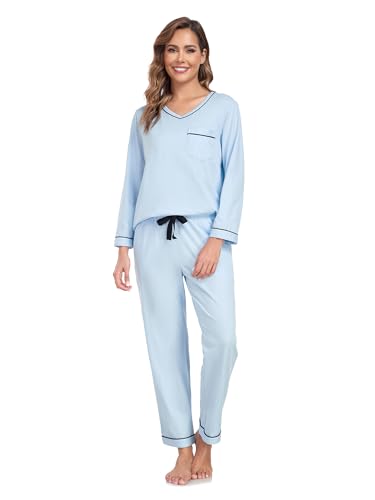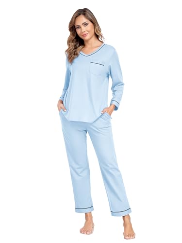 • 2. Modern Fit with Functional Pockets:These women's cotton pajama sets feature a relaxed fit. The streamlined, shorter cut on the cuffs and ankles is designed for a clean look and ease of movement. The set includes a V-neck and two side pockets for added practicality.
