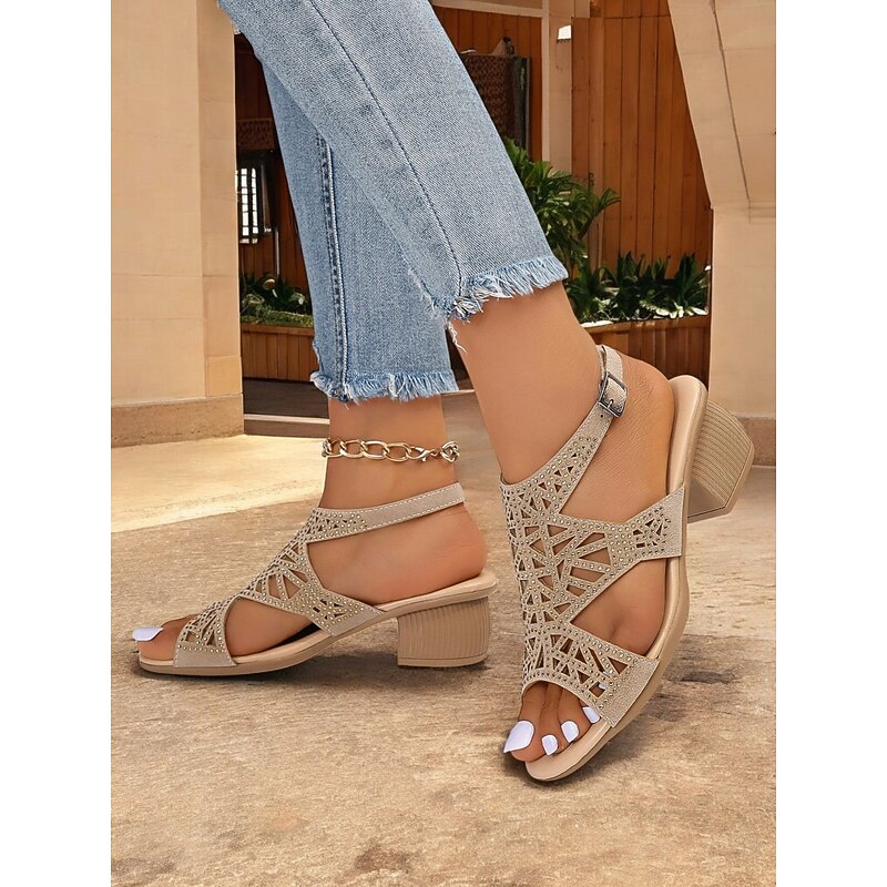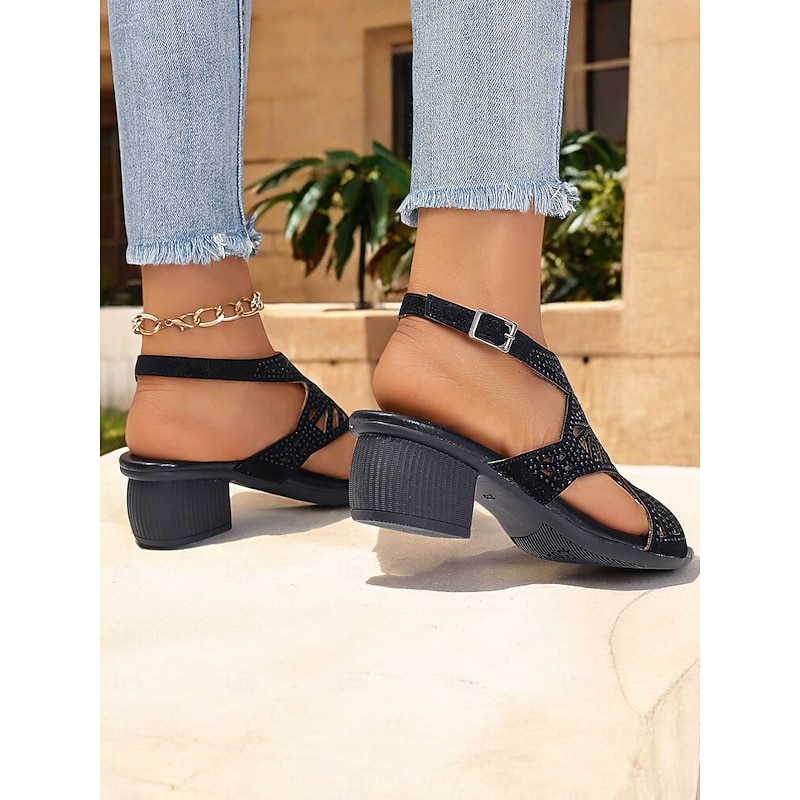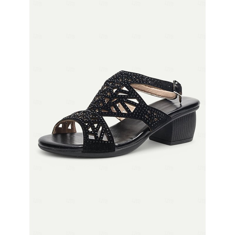 Women's Black Open-Toe Heeled Sandals with Decorative Crisscross Straps and Rhinestone Detailing – Stylish and Comfortable for Casual or Evening Wear 12