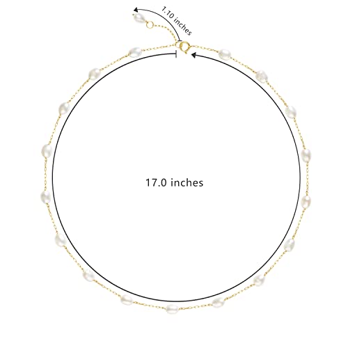 Pearl Necklace for Women 14K Gold Filled Chain Multiple Real White Freshwater Cultured Pearl Necklace Tin Cup Pearl Handmade Necklace Jewelry,17"+1" 6