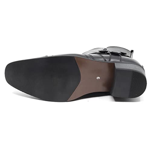 Metrocharm Men's Casual Belt Strap Studded Western Cowboy Shoes Boots WESTERN-01 5