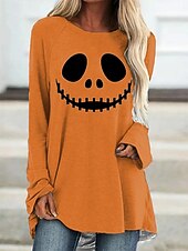 More information about Halloween Women's T shirt Pumpkin Long Sleeve Graphic Ghost Vintage Stylish Classic Long Sleeve Crew Neck Round Neck Long Tops Daily Print White Red Orange Spring Fall Prefall