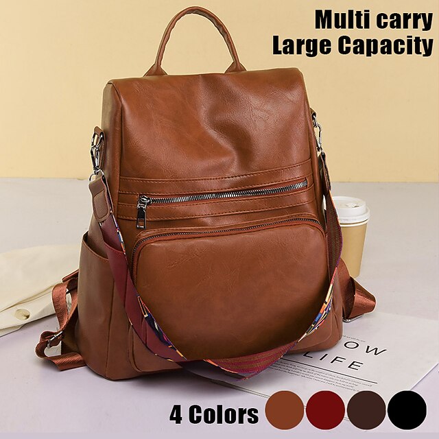 Women's Backpack School Bag Bookbag Commuter Backpack School Daily Solid Color PU Leather Large Capacity Waterproof Lightweight Zipper Coffee color Black Red 19