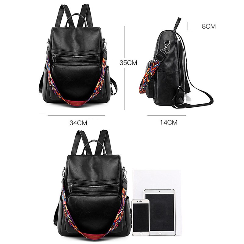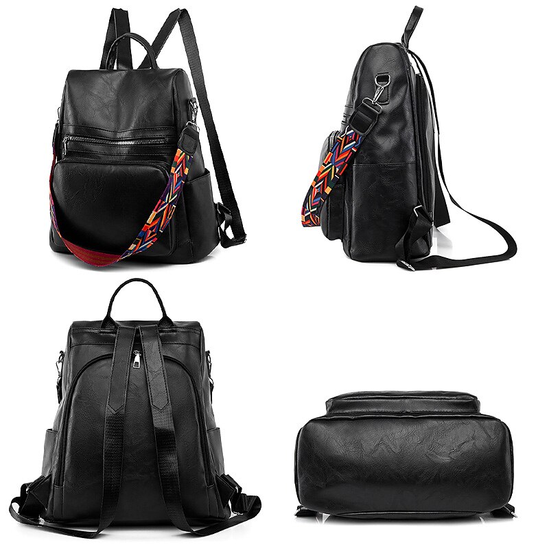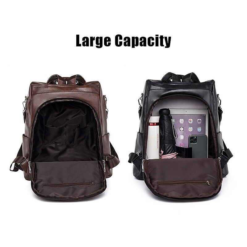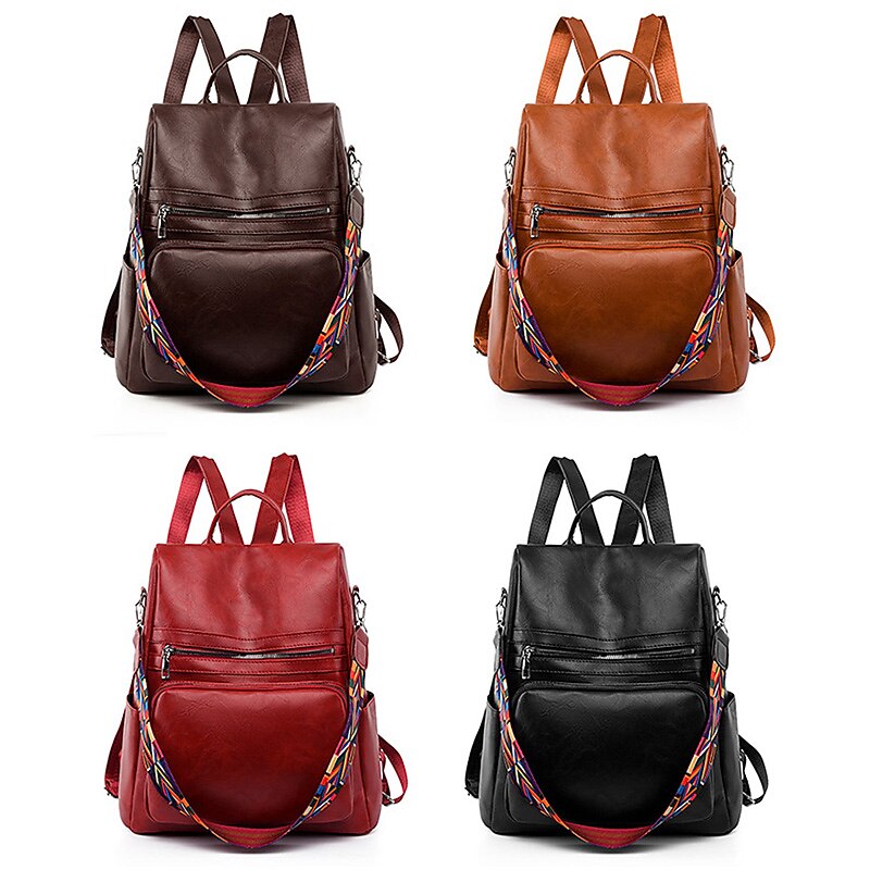 More information about Women's Backpack School Bag Bookbag Commuter Backpack School Daily Solid Color PU Leather Large Capacity Waterproof Lightweight Zipper Coffee color Black Red