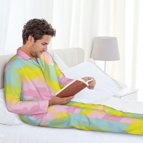 HOT ! Spiral Swirly Tie Dye Mens Pajamas Set Button Down Sleepwear Set Long Sleeve Loungewear With Pockets
