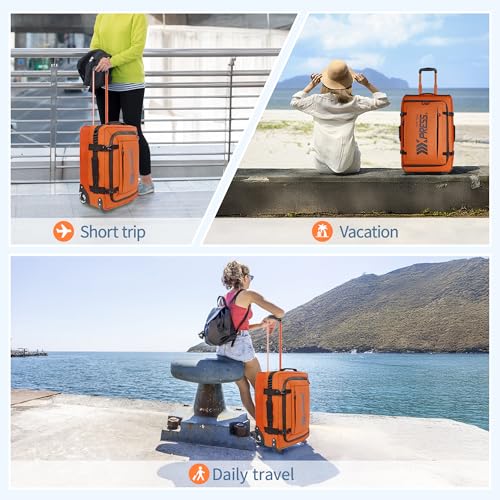 20'' Rolling Duffle Bag w/Wheels,Rolling Duffle Bag w/Handle,Carry on Luggage Travel Duffle Bags for Man Women(20,Orange) 4