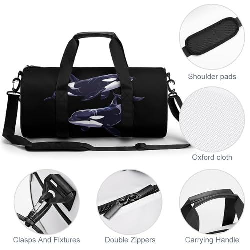 Orca Killer Whale Gym Bag for Women Men Travel Duffle Bag Carry on Weekender Tote Bag Lightweight 6