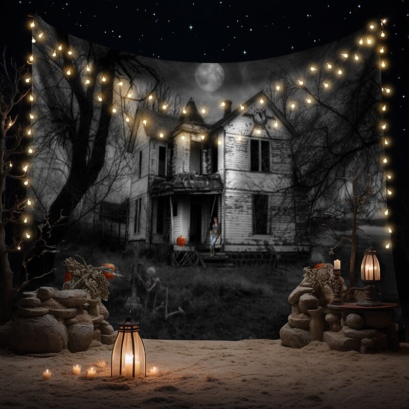 Halloween Tapestry Art Decoration Blanket Curtains Hanging Home Bedroom Living Room Decoration Pumpkin Ghost Skull Ghost House Eerie And Terrifying Halloween Decorations 9
