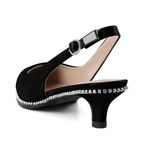 More information about Women Kitten Heels Slingback Pumps Trendy Rhinestones Beaded Pumps Pointed Toe Sandals Ankle-Strap Dress Shoes Office Party 1.5" Black Patent Leather US Size 8