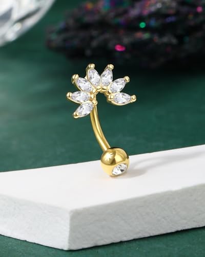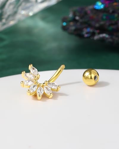HOT ! COCHARM Cute Silver Gold Flower Rook Earrings 16g Sparkling Rook Barbells for Women Gold Stainless Steel 8mm Rook Piercing Dainty Rook Jewelry Silver Rook Rings