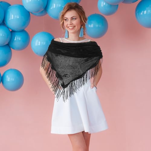 Black Lace Shawl Triangle Lace Shawls and Wraps Black Lace Scarf Black Shawl with Fringe Triangle Shawl Black Fringe Shawl for Wedding Evening Party Dresses 1