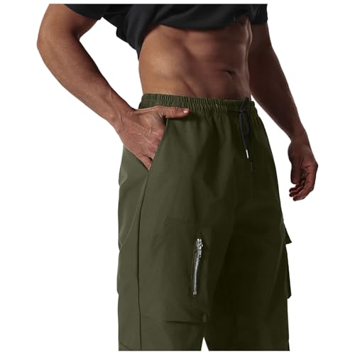 HOT ! Tactical Cargo Pants for Men Waist Drawstring Joggers Sweatpants Casual Loose Fit Outdoor Pants with Zipper Pockets