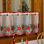 More information about Christmas Red Half Curtain American Style Door Curtain Cafe Curtain, Embroidered Lace Semi Blackout Window Treatment for Holiday Decoration