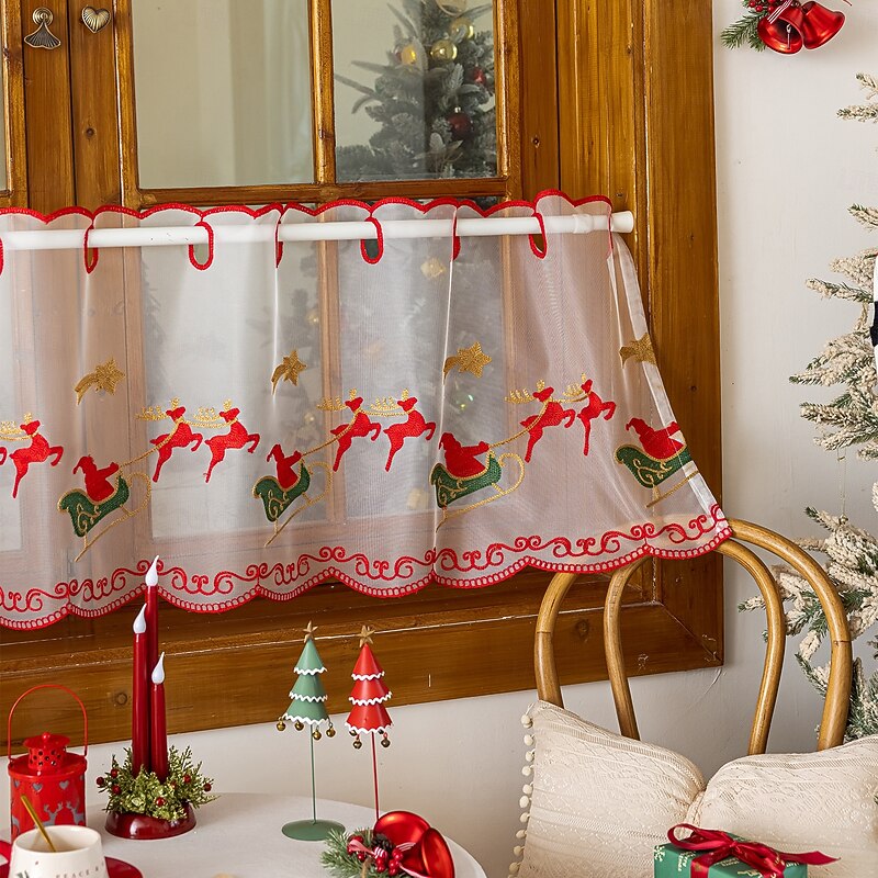 HOT ! Christmas Red Half Curtain American Style Door Curtain Cafe Curtain, Embroidered Lace Semi Blackout Window Treatment for Holiday Decoration