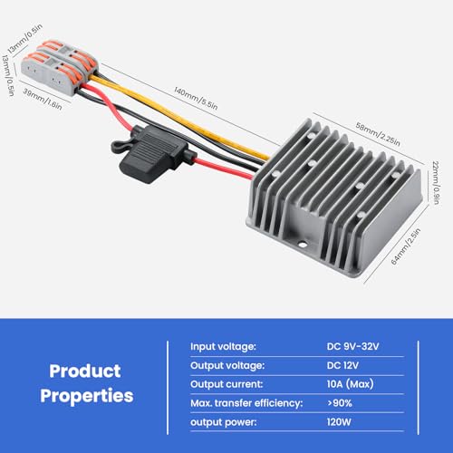 More information about DC 9V-32V to 12V10A Voltage Converter, 24V Step Down to 12V 120W Buck With Safety Fuse and Clamps, Voltage Regulator, Power Supply Adapter, Truck Step-Down Volt