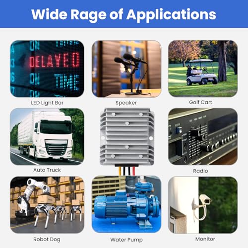 • Wide application:Large trucks, Golf cart, Club car, taxi radio, emu, car audio, LCD TV, advertising screen, LED strip lights, monitoring system, electronic systems and DIY etc.