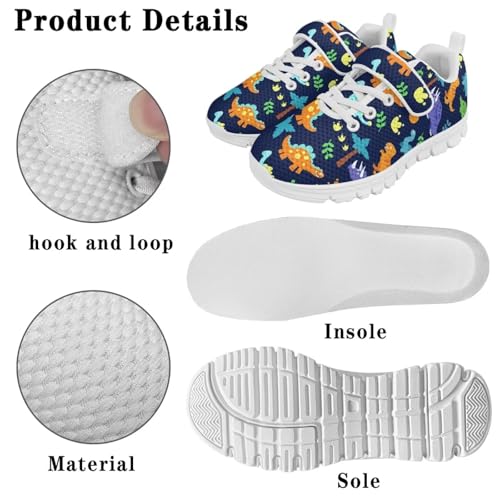 Little Kid Shoes Boys Girls Sneakers Tennis Running Lightweight Breathable Shoes Dinosaur Tree Pattern(White Sole) 5