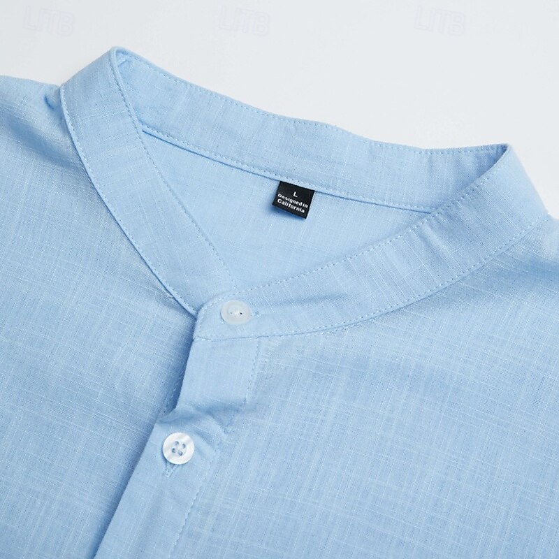 More information about Men's Shirt Linen Shirt Band Collar Shirt Popover Shirt Summer Shirt Beach Wear Solid Color Vacation Casual White+khaki Blue+Dark Grey Navy Blue+Grey Blue+Navy Blue Long Sleeve Henley Summer Spring