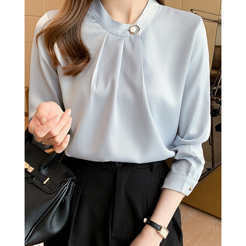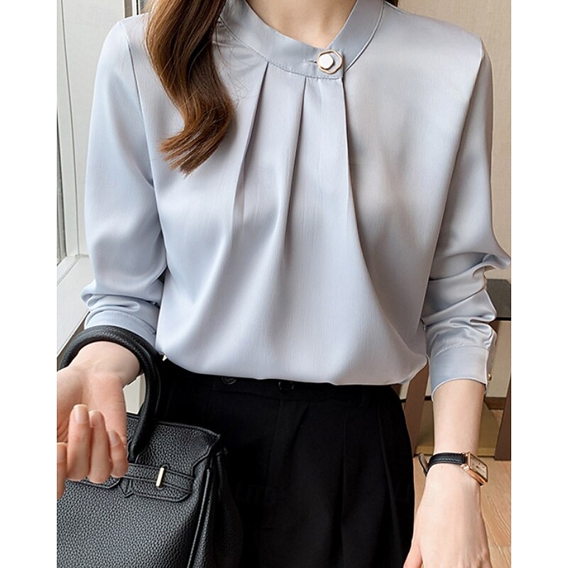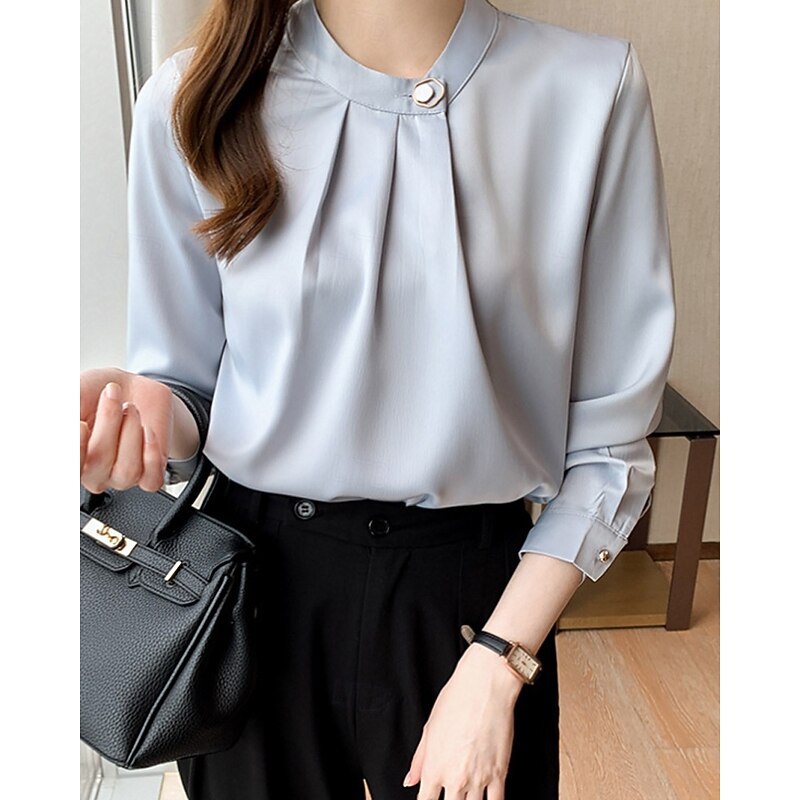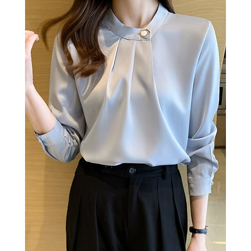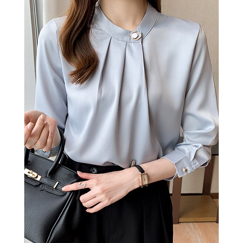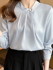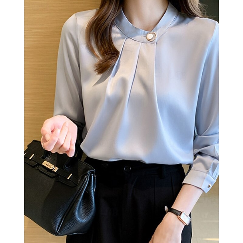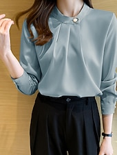 More information about Women's Shirt Elegant Dressy Satin Plain Stylish Formal Long Sleeve V Neck Regular Tops Work Going out Ruched Buttons White Champagne Blue Gray Spring Fall