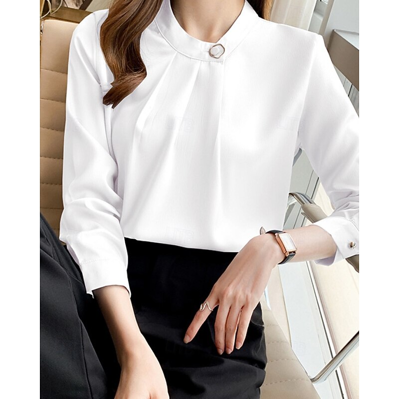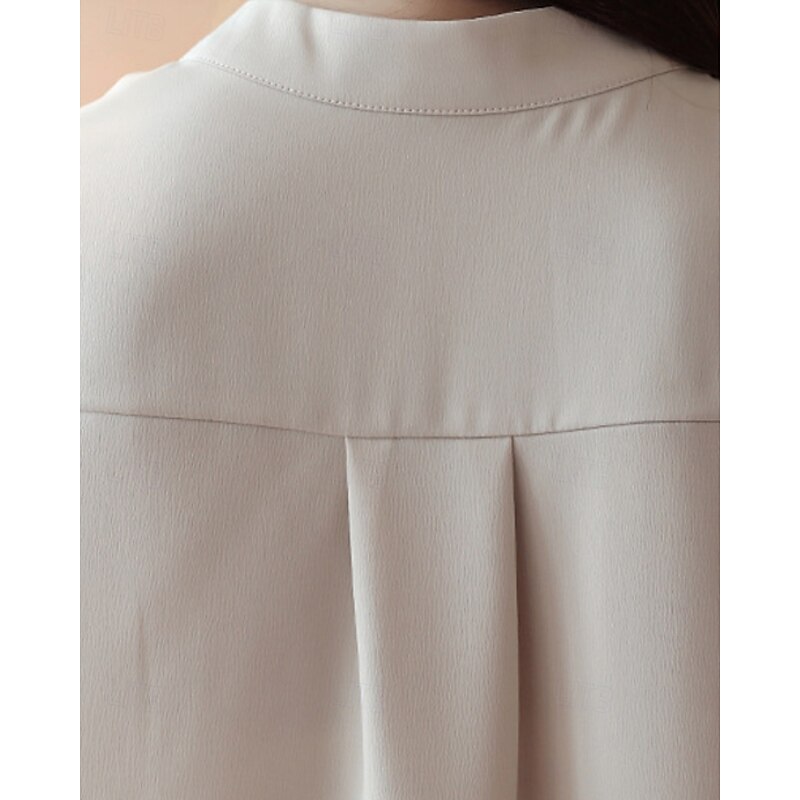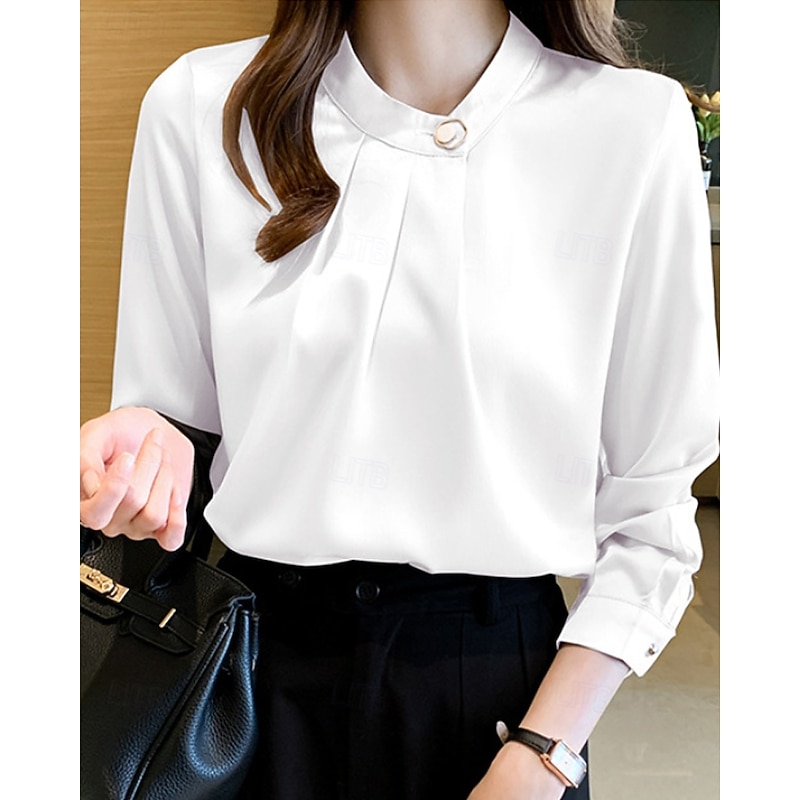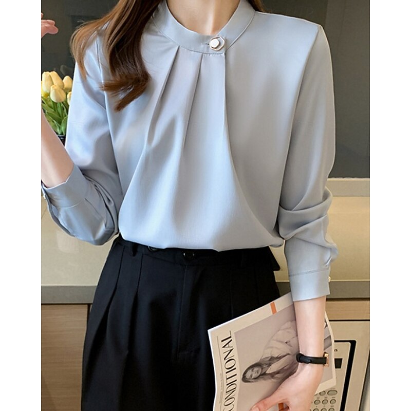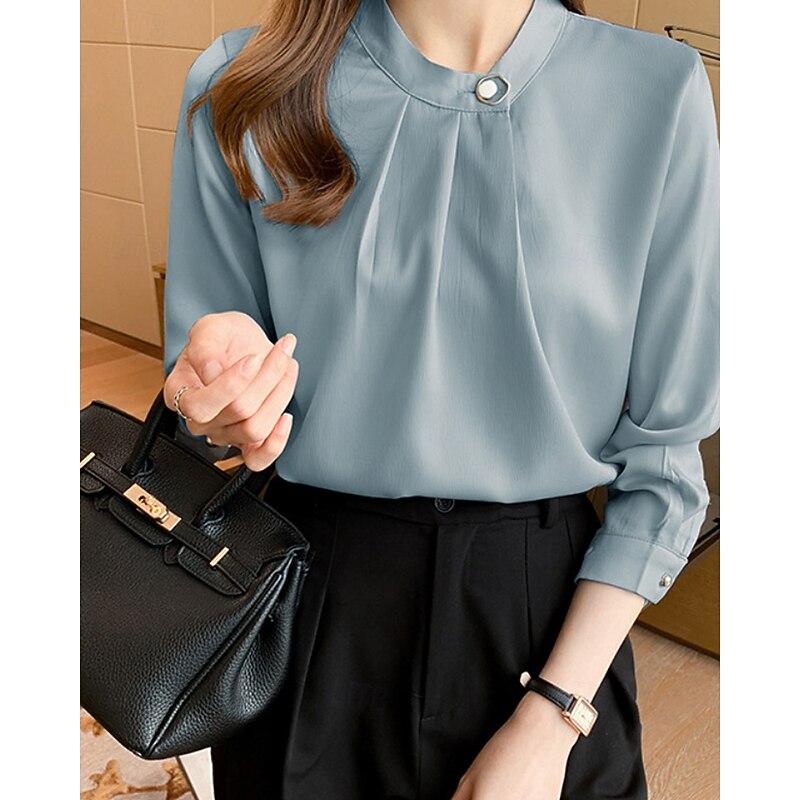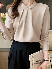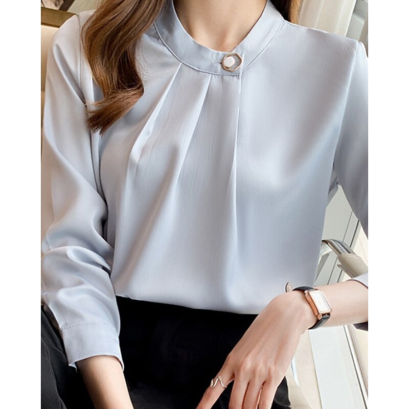 More information about Women's Shirt Elegant Dressy Satin Plain Stylish Formal Long Sleeve V Neck Regular Tops Work Going out Ruched Buttons White Champagne Blue Gray Spring Fall