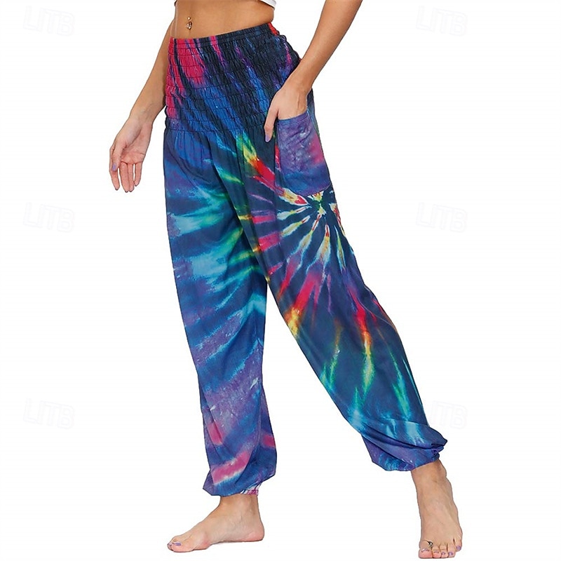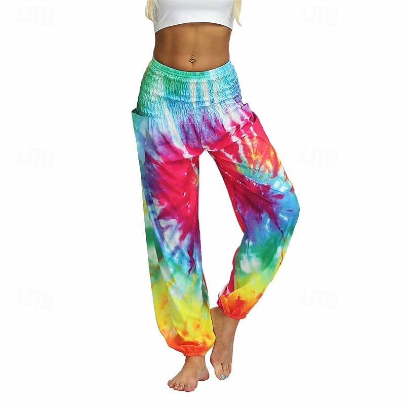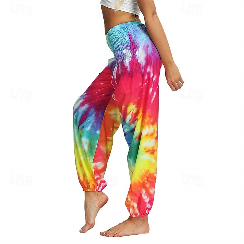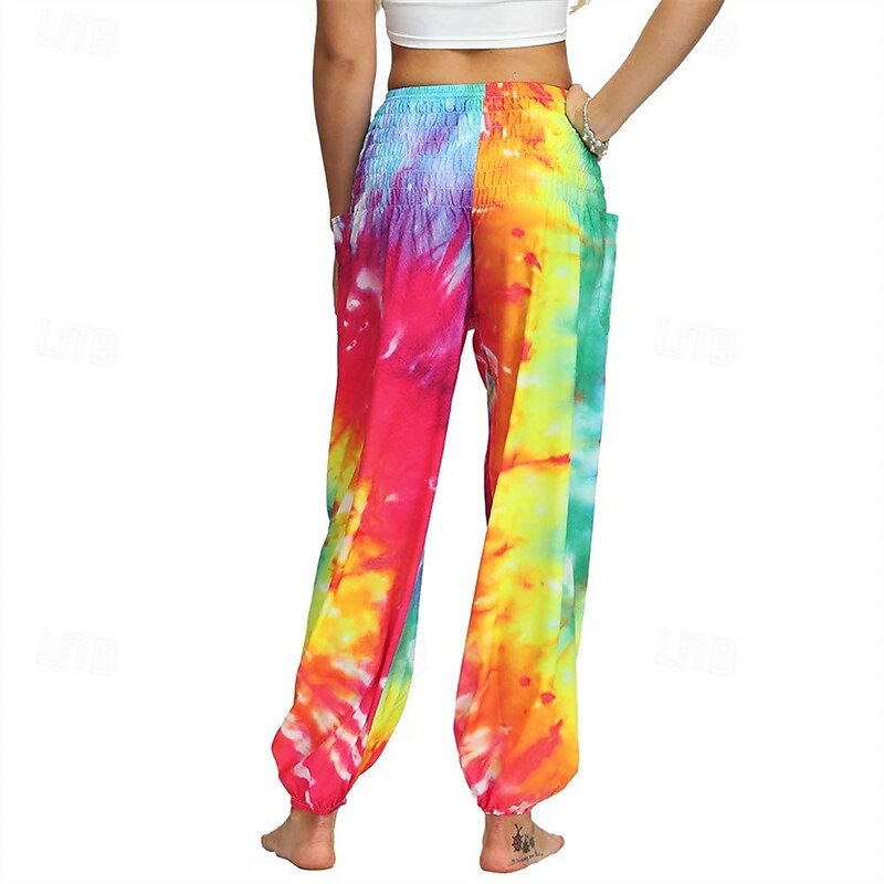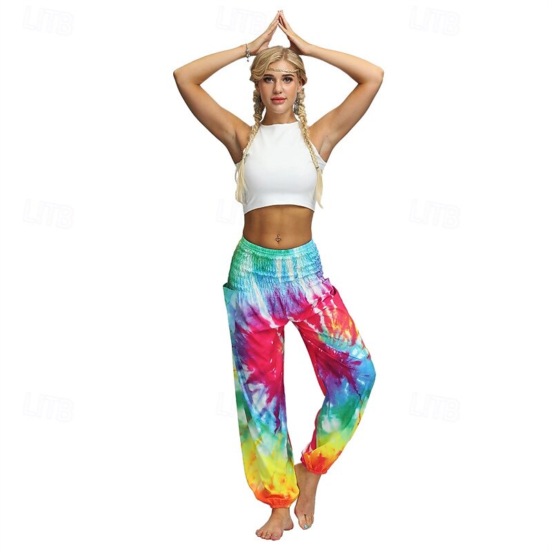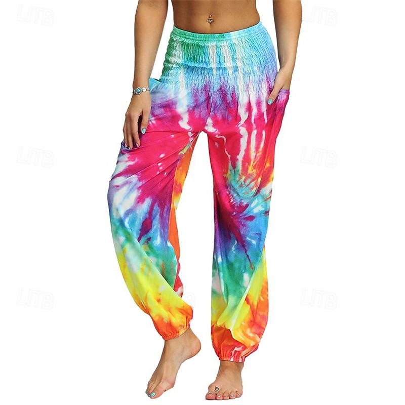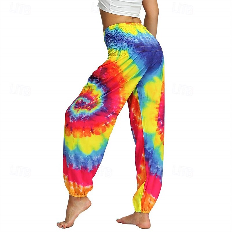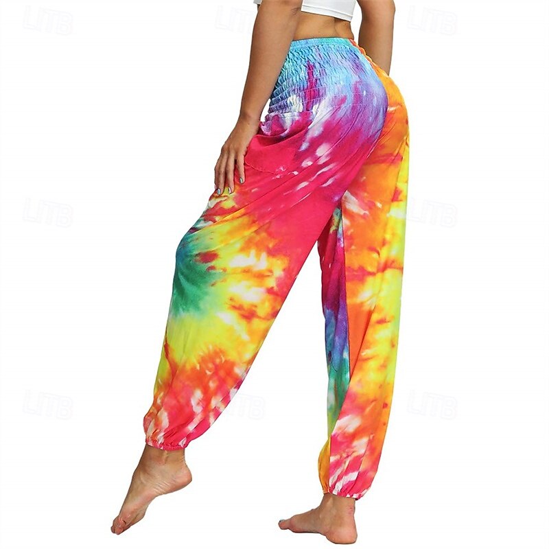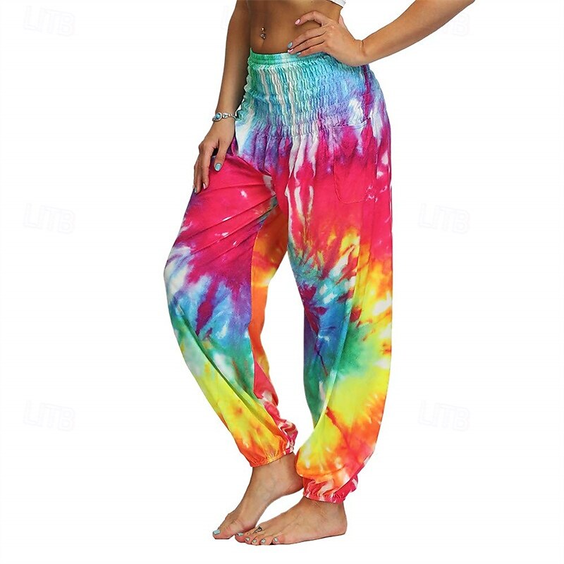 Retro Vintage Boho 1970s Harem pants Yoga Pants Hippie Tie Dye Smocked Waist Rainbow Fancy Dress Women's Halloween Carnival Pride Parade Pride Month Festival Adults' Pants 31