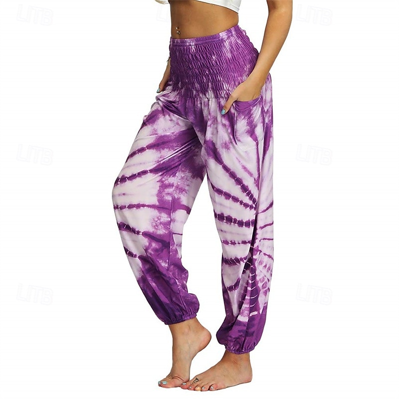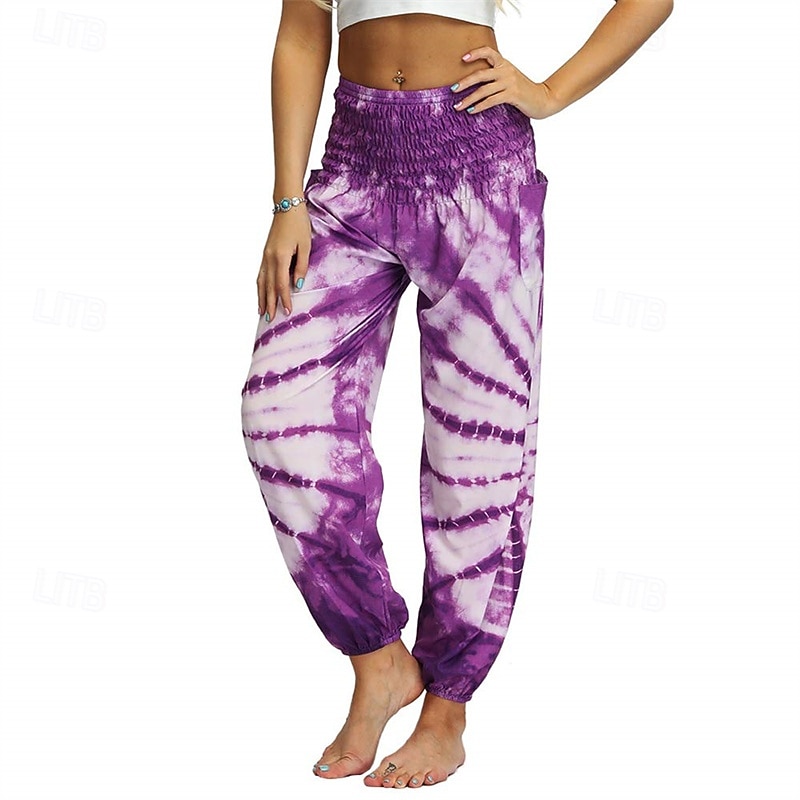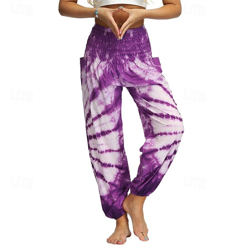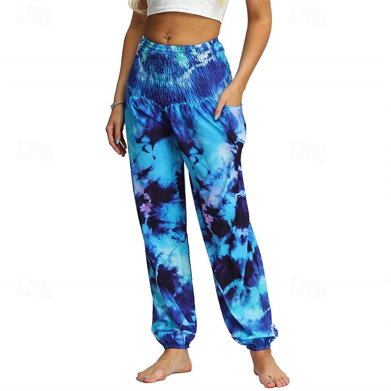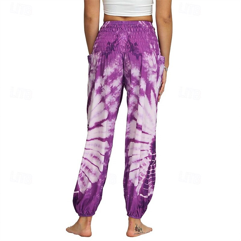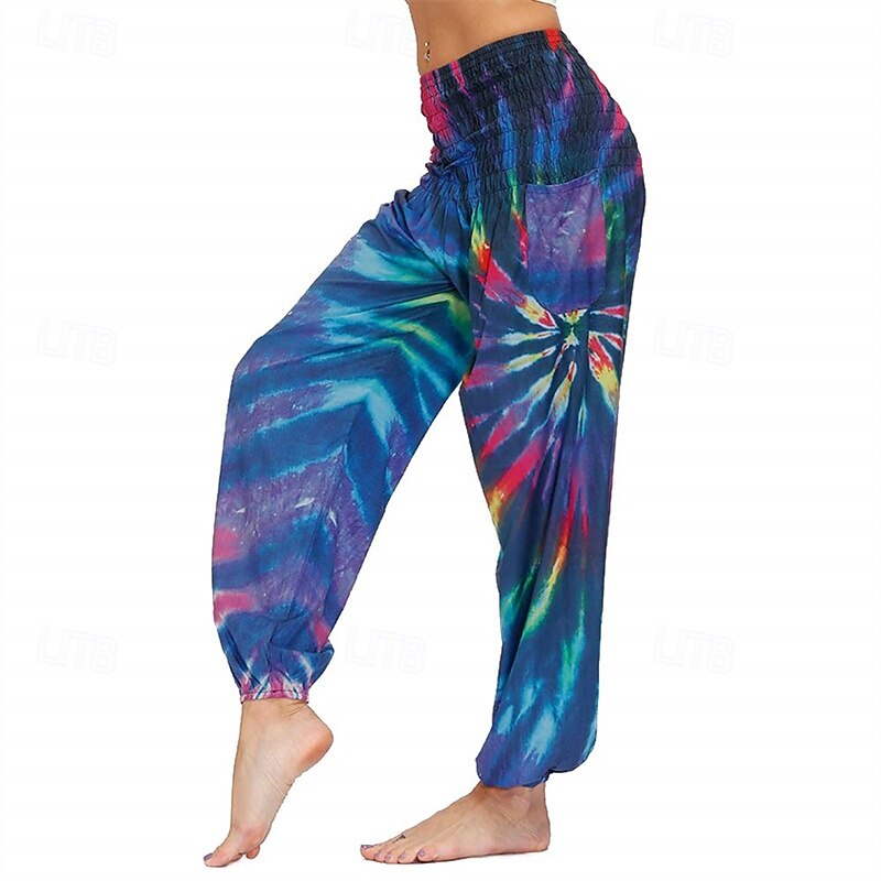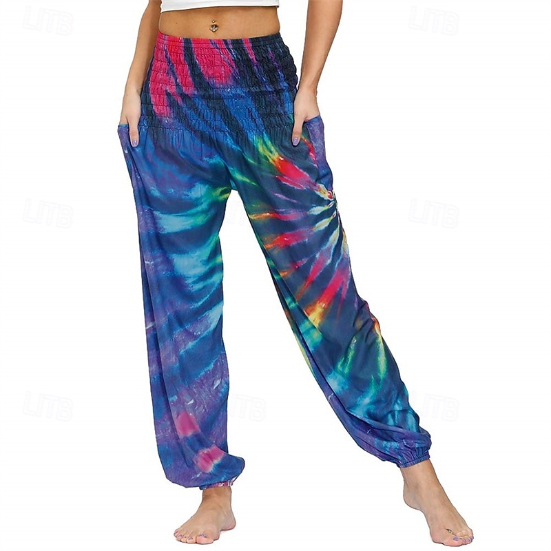 HOT ! Retro Vintage Boho 1970s Harem pants Yoga Pants Hippie Tie Dye Smocked Waist Rainbow Fancy Dress Women's Halloween Carnival Pride Parade Pride Month Festival Adults' Pants