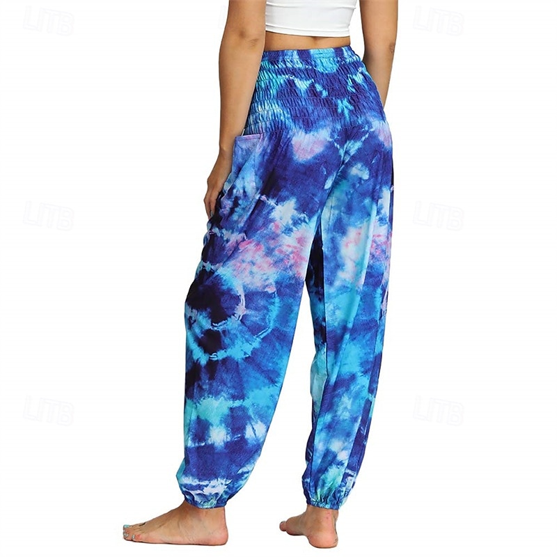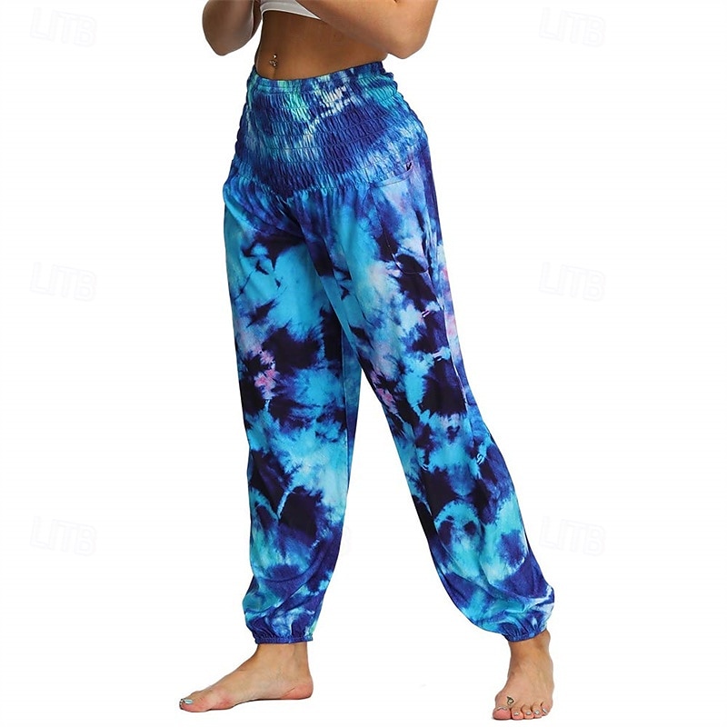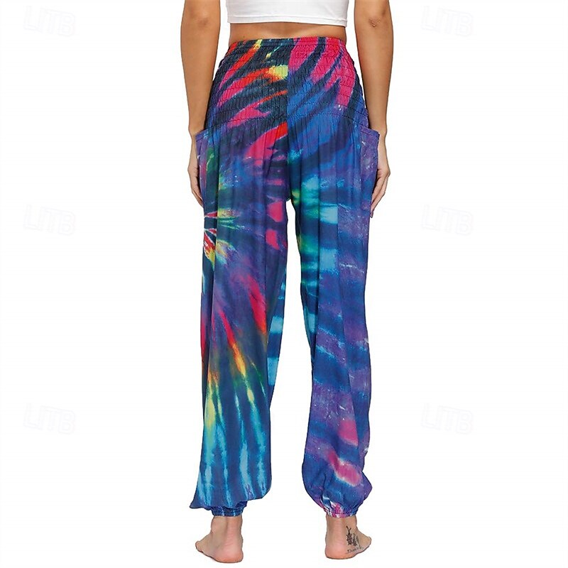 Retro Vintage Boho 1970s Harem pants Yoga Pants Hippie Tie Dye Smocked Waist Rainbow Fancy Dress Women's Halloween Carnival Pride Parade Pride Month Festival Adults' Pants 35