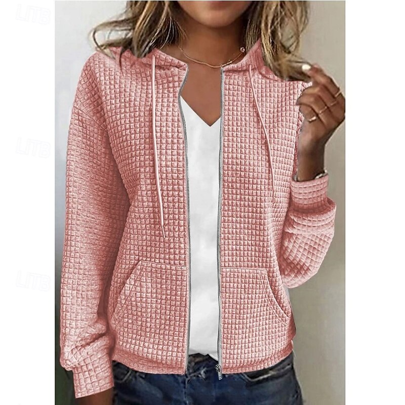 Women's Hoodies Textured Jackets Casual Long Sleeve Hooded Regular Tops Black White Pink Blue Khaki Spring, Fall, Winter, Summer 1