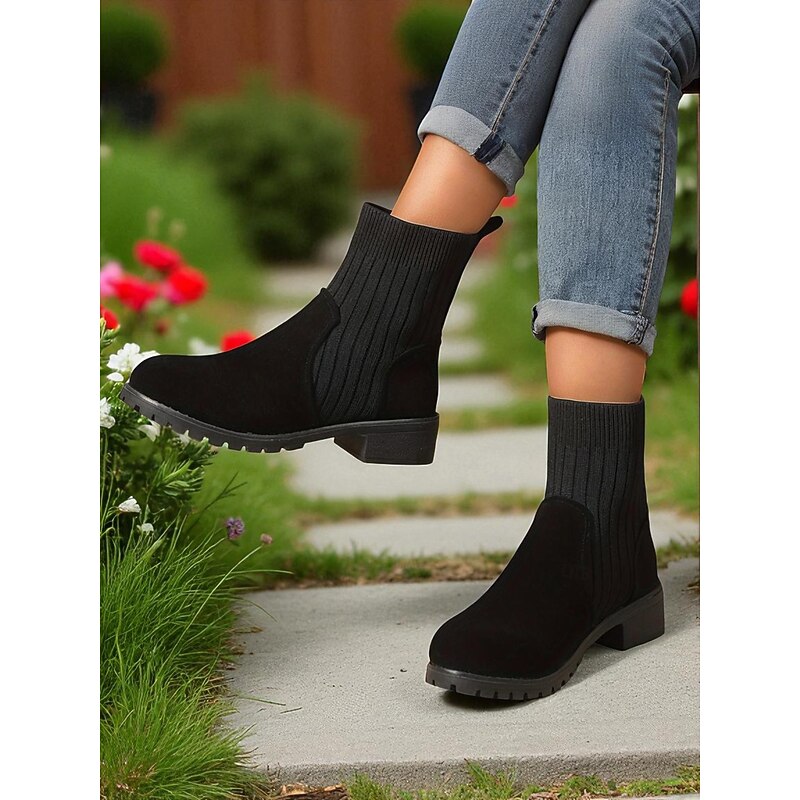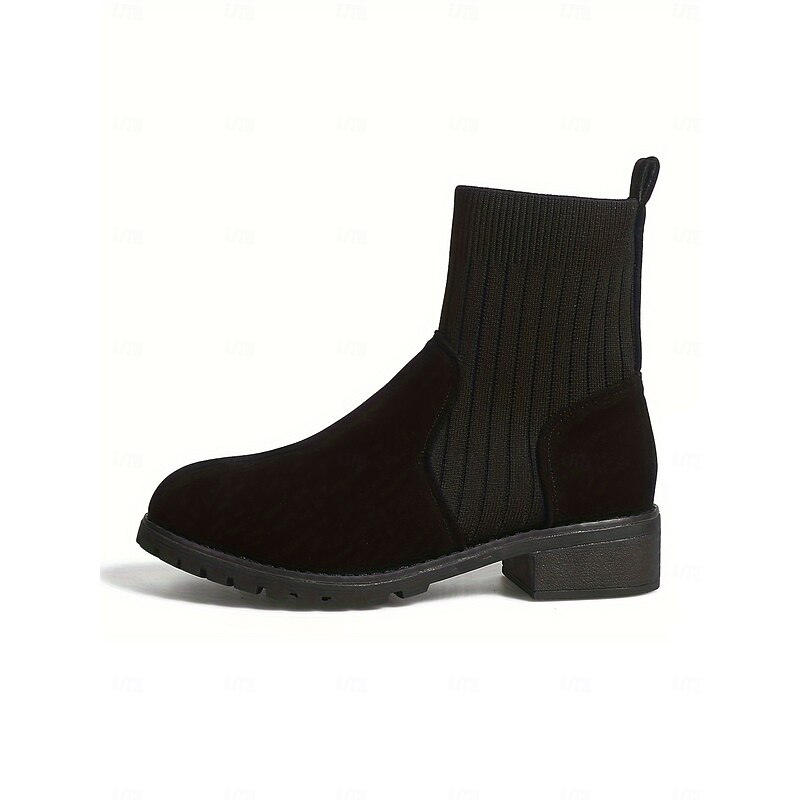 More information about Women's Light Brown Faux Suede Ankle Boots with Ribbed Knit Shaft – Cozy Autumn Winter Chelsea Style Boots for Casual Outfits