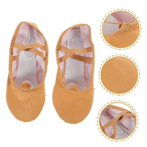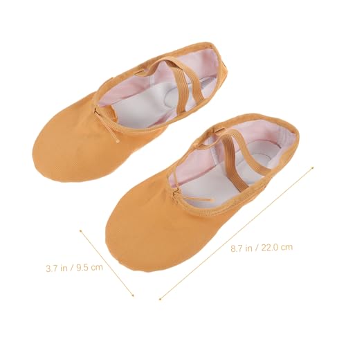 Healifty 1 Pair Girls Ballet Flats Princess Ballet Shoes Yoga Shoes Barre Ballet Shoes Stretch Canvas Ballet Slippers Shoes Sole Ballet Shoe Girl Child Practice Shoes Non-slip Light Brown 7