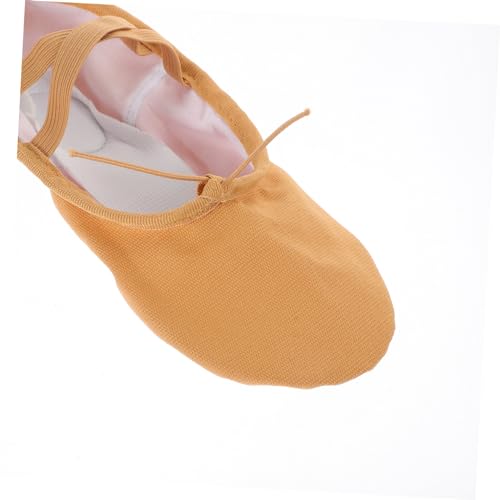 Healifty 1 Pair Girls Ballet Flats Princess Ballet Shoes Yoga Shoes Barre Ballet Shoes Stretch Canvas Ballet Slippers Shoes Sole Ballet Shoe Girl Child Practice Shoes Non-slip Light Brown 5