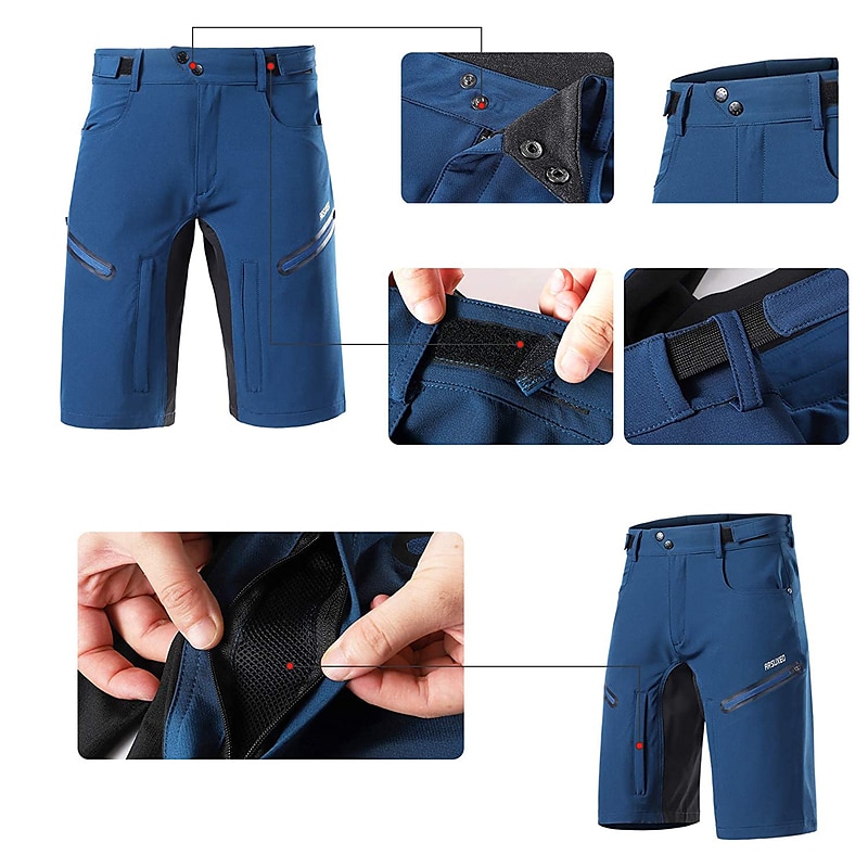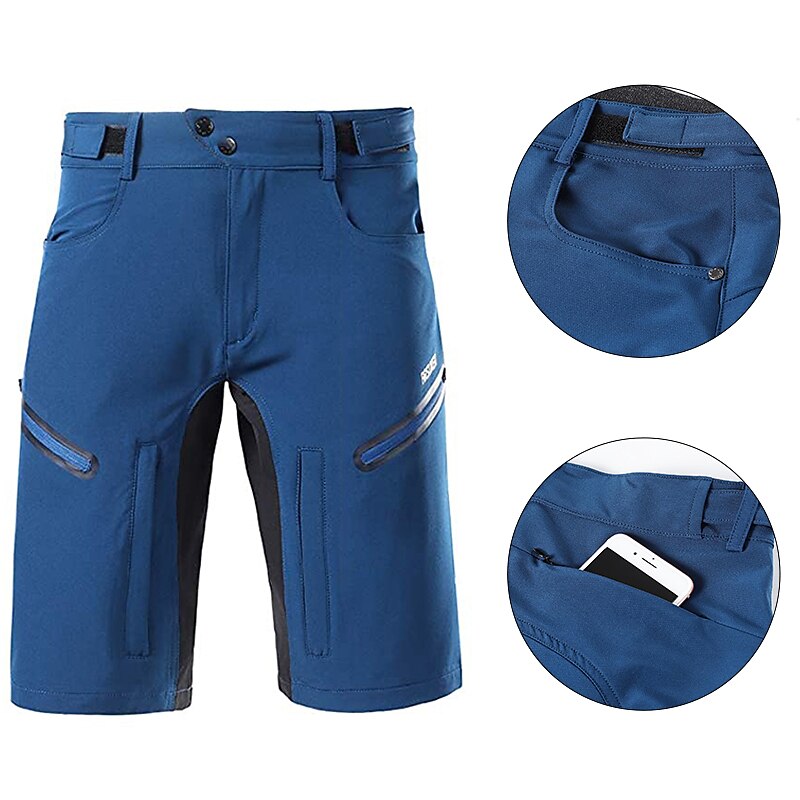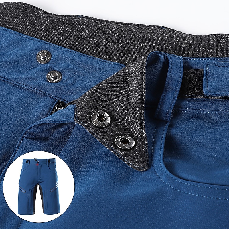 Highlights - With 5 pockets, including 2 hand pockets and 2 zipper pockets, plus a back hidden zipper pocket, the Cycling Shorts offers ample storage and easy access. - The reflective strips enhance your visibility and safety during early morning or late evening hikes. - The adjustable waistband ensures a comfortable and personalized fit for any terrain and activity. - The loose version makes it highly functional for bicycle touring and mile ride mountain bike rides, with non-binding legs that are elastic-free and soft to wear. - The quality Spandex fabric provides stretchy elasticity, quick dry function, and durable water resistance and breathability, making it ideal for both mountain bike MTB and road bike cycling.