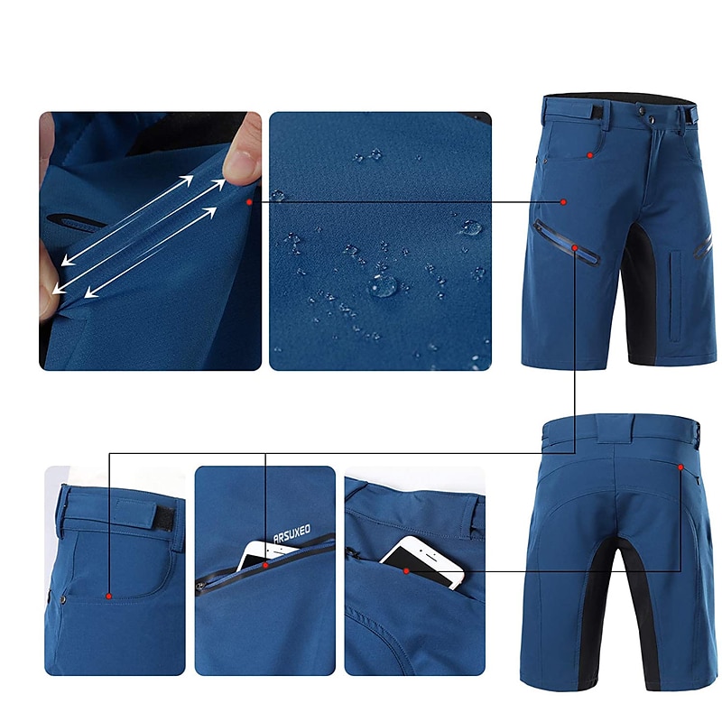 More information about Arsuxeo Men's Solid Color Cycling MTB Shorts Bike Shorts Bike Baggy Shorts Bottoms Loose Fit Mountain Bike MTB Road Bike Cycling Sports Quick Dry Waterproof Zipper Wearable Back Pocket Dark Grey