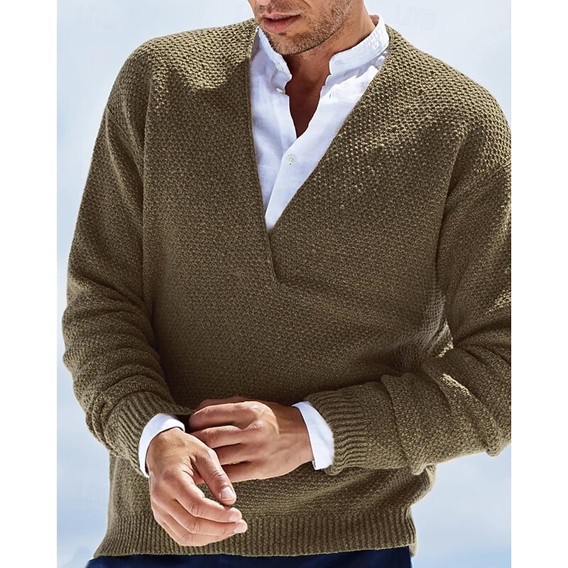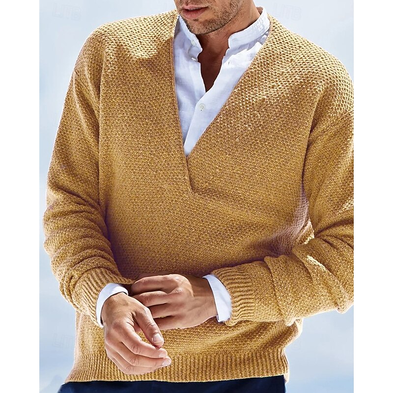 More information about Men's Pullover Sweater Jumper Dress Sweater Knit Sweater Ribbed Knit Regular Knitted Plain V Neck Fashion Basic Daily Wear Date Clothing Apparel Fall & Winter caramel Black S M L