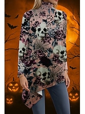More information about Halloween Women's Blouse Floral Graphic Elegant Active Stylish Long Sleeve Turtleneck Regular Tops Party Evening Wear Daily Going out Asymmetric Hem Pink Spring Fall Winter Spring, Fall